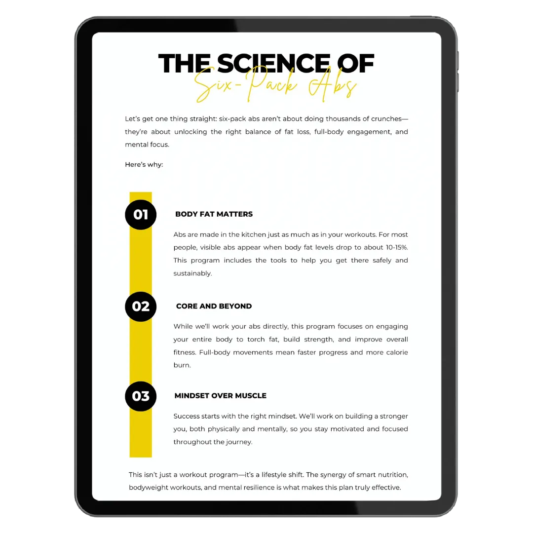 โ The Results Guarantee: Follow the program for 90 days. If you don't see measurable definition in your abs, send us your tracking data for a full refund.
